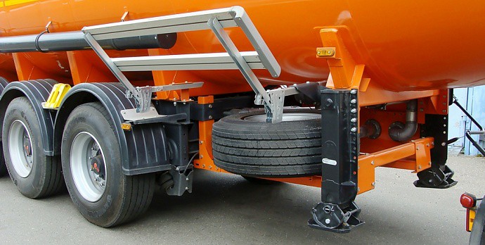 Опорное устройство служит передней опорой отцепленного от тягача ППЦ.