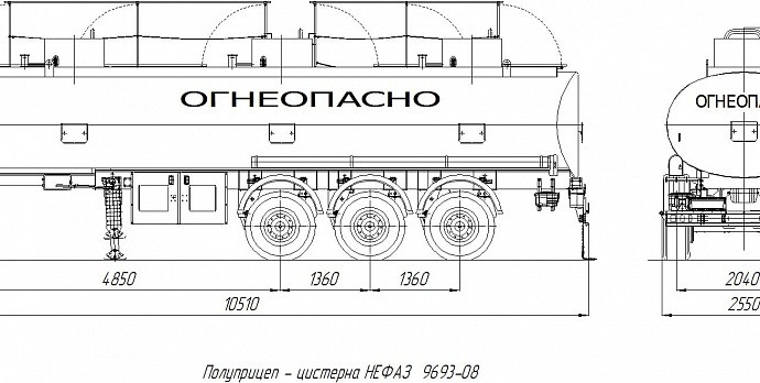 Полуприцеп-цистерна НЕФАЗ-9693 является транспортной мерой полной вместимости и предназначен для транспортирования и кратковременного хранения нефтепродуктов.
