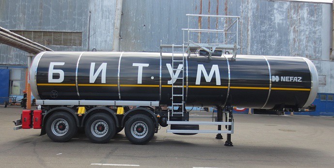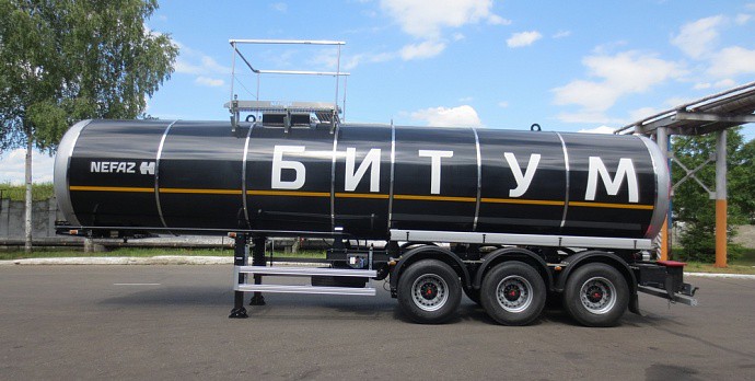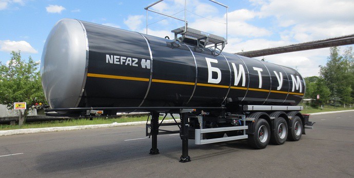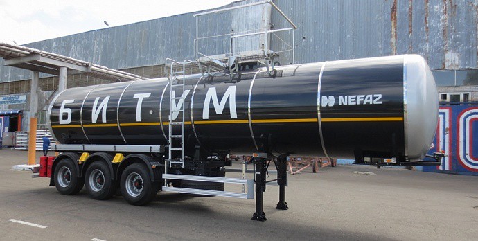 Полуприцеп-цистерна НЕФАЗ – 96931-0110130-04 предназначена для перевозки битума, плотностью 0,92 т/м3. Вместимость составляет 26000 литров. Корпус цистерны круглого сечения, одногсекционный, термоизолированный, толщина изоляции 150 мм, материал мата Isover с фольгированным наружным слоем. Корпус цистерны несущий: в передней части установлена опорная плита с шкворнем, в задней части установлена подкатная тележка с подвеской и осями SAF Intra. Передняя ось подъемная.