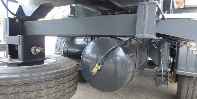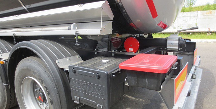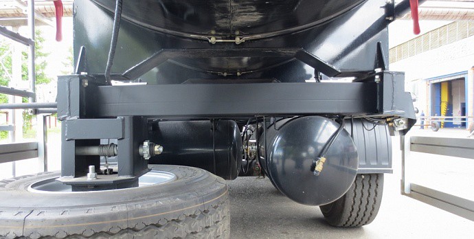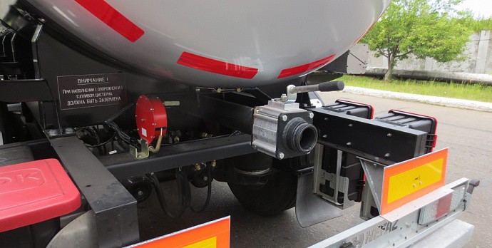 Запорная арматура двойного действия: внутри корпуса цистерны установлен дополнительный клапан, который приводится в действие штурвалом, выведенному в боковую заднюю часть корпуса цистерны и шаровой кран Ду=100, установленного на конце сливного трубопровода, позволяющего при необходимости выполнять подогрев открытым пламенем (при застывании битума).