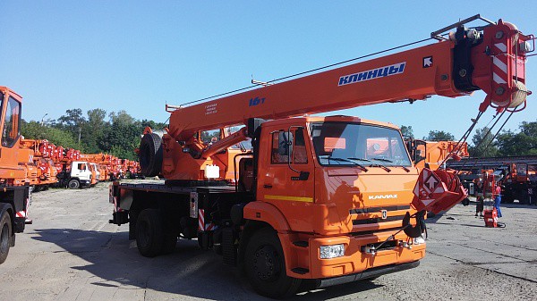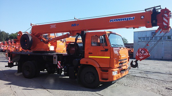 Кран автомобильный КС-35719-1-02 грузоподъемностью 16 тонн на шасси автомобиля КАМАЗ-43253 предназначен для выполнения погрузочно-разгрузочных и строительно-монтажных работ.