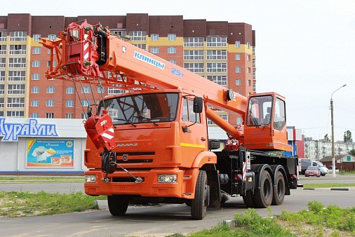 Кран автомобильный КС-55713-1К-1 грузоподъемностью 25 тонн на шасси автомобиля КАМАЗ-65115 предназначен для выполнения погрузочно-разгрузочных и строительно-монтажных работ на рассредоточенных объектах.
