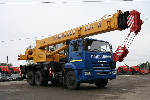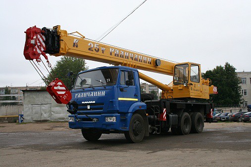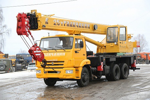 Кран автомобильный КС-55713-1В грузоподъемностью 25 тонн на шасси автомобиля КАМАЗ-65115 предназначен для выполнения погрузочно-раз-грузочных и строительно-монтажных работ на рассредоточенных объектах.