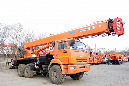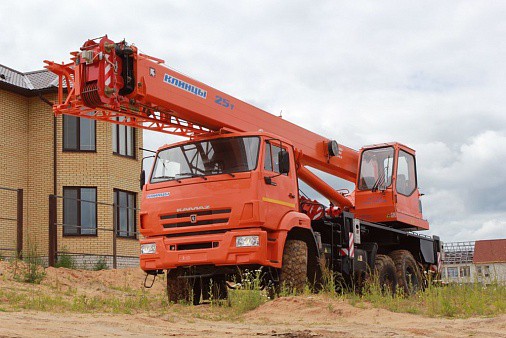 Кран автомобильный КС-55713-5К-2 грузоподъемностью 25 тонн на шасси автомобиля КАМАЗ-43118 предназначен для выполнения погрузочно-разгрузочных и строительно-монтажных работ на рассредоточенных объектах.