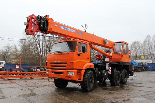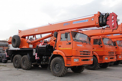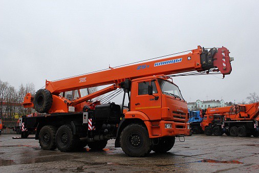 Автокран автомобильный КС-55713-5К-3 грузоподъемностью 25 тонн на шасси автомобиля КАМАЗ-43118 предназначен для выполнения погрузочно-разгрузочных и строительно-монтажных работ на рассредоточенных объектах.