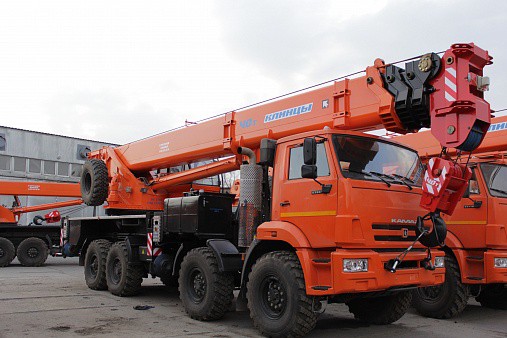 Кран автомобильный КС-65719-3К-1 грузоподъемностью 40 тонн на шасси КАМАЗ-63501 предназначен для широкого спектра погрузочно-разгрузочных и строительно-монтажных работ. Кран универсален и может применяться как в стесненных условиях города, так и в условиях удаленности от населенных пунктов.