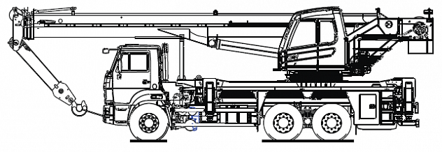 Надёжное в эксплуатации шасси КАМАЗ-65115 (6х4). Овоидное сечение секций стрелы. Высокие характеристики проходимости и качество ходовой части автокрана. Компьютерная диагностика неисправностей, чувствительный контроль над системами. Гарантия сервисного обслуживания в любой точке России. Полная адаптация крановой установки к сложным климатическим условиям России. ОПЦИИ: централизованная система смазки шасси; дополнительная лебёдка; дополнительный крюкоблок; носовой шкив стрелы; гусёк; откидная кабина крановщика.