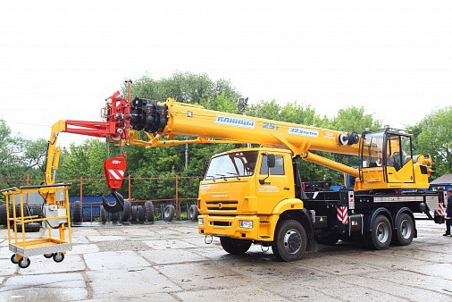 Подъёмник-кран стреловой ПКС-55713-4К-4В – это полноценный автомобильный кран грузоподъёмностью 25 тонн с длинной стрелы 32,5 метра, способный дооборудоваться (превращаться) в полноценный подъёмник (вышку), который перемещает людей и груз массой до 250 кг на высоту 35 метров.