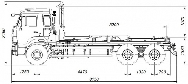 Автомобиль 658607-2030-09 с крюковым погрузчиком МПР-18Т.52 предназначен для интенсивных транспортных работ с использованием сменных кузовов DIN 30722-1, с внутренними размерами длины от 5600 до 6200 мм, полной массой до 11 тонн.