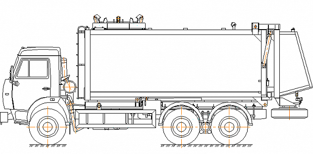 - Загрузка отходов в кузов производится из контейнера боковым манипулятором.