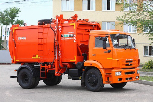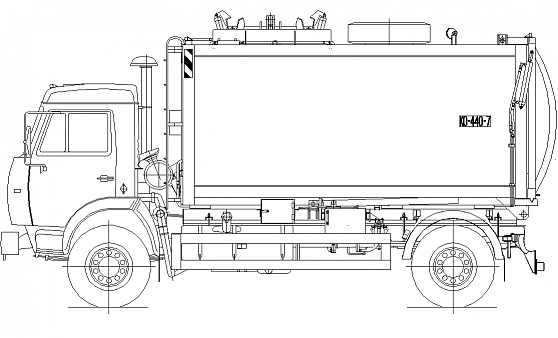 Мусоровоз с боковой загрузкой КО-440-7 имеет колесную формулу 4х2 и предназначен для механизированной погрузки твёрдых бытовых отходов, их уплотнения и доставки на место обезвреживания и утилизации.