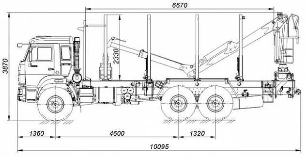 Автомобиль снабжен гидроманипулятором ВЕЛМАШ ОМТЛ-97 предназначенным для перемещения и укладки поваленных деревьев и их частей с целью погрузки (разгрузки), штабелевки, сортировки, а также выполнения других лесохозяйственных и лесозаготовительных работ.